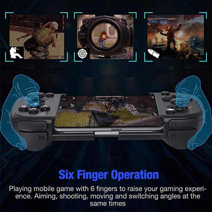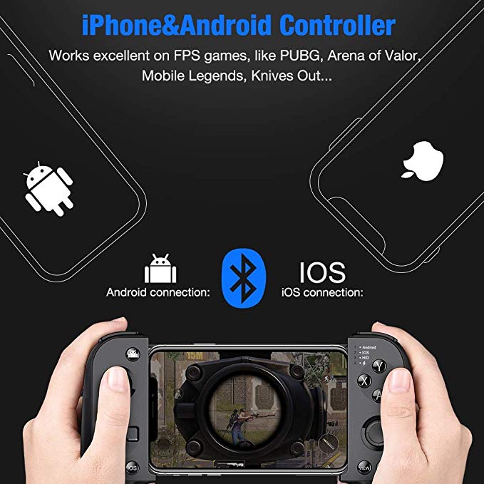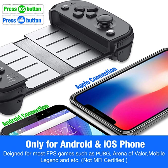 Designed for most FPS games such as PUBG, Arena of Valor, Mobile Legend, etc. Work with Bluetooth, mobile phone controller for Android, even iPhone.