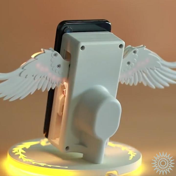 As you place your phone down, the base symbols will begin to light up and the wings will start to rise! A charging experience like no other!