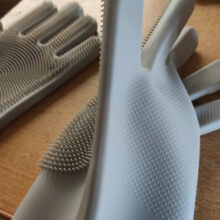 Good gloves, but after testing them when washing dishes, I concluded for myself, they are uncomfortable. When you wash the dishes sometimes you want to wash with your finger in some places it is not convenient, but on the gloves on the bend of the finger there is no bristles, it does not allow you to wash well.
