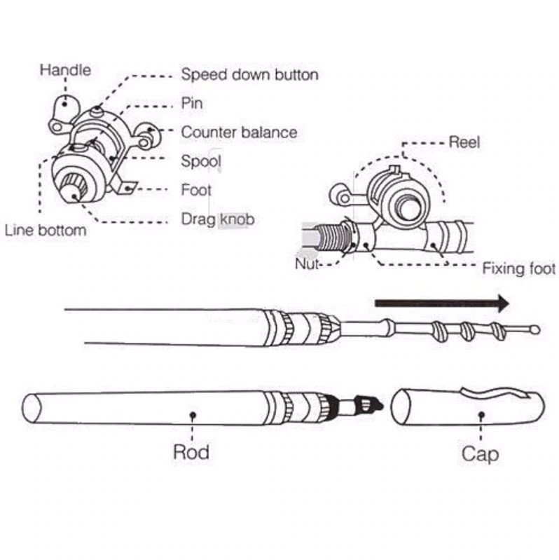 Open your pen rod by taking off the cap, simply insert the reel between the two grooves on the pen, and twist the screw down to tighten the reel onto the rod.
